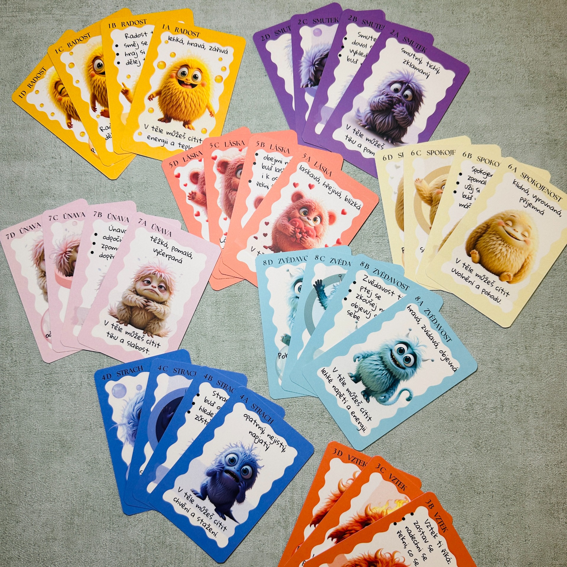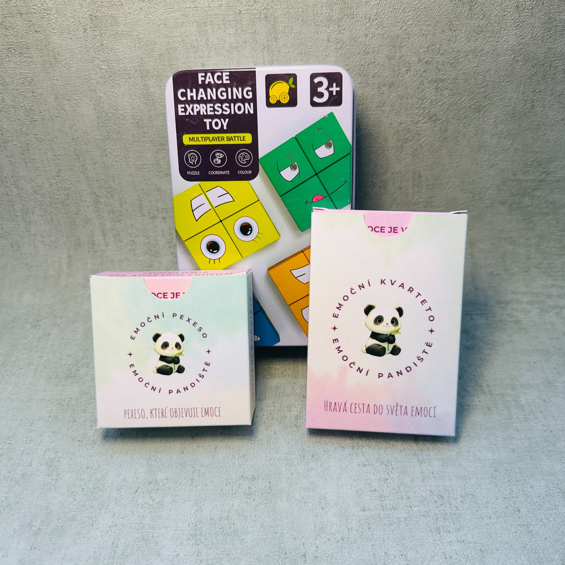 Obsahuje tři různé hry, které dítě vtáhnou každá jiným způsobem. Jedna pracuje s pamětí a pozorováním, druhá s komunikací a třetí s fantazií a reakcí na situace. Díky tomu dítě přirozeně prochází různými úrovněmi práce s emocemi – aniž by mělo pocit, že se něco "učí".