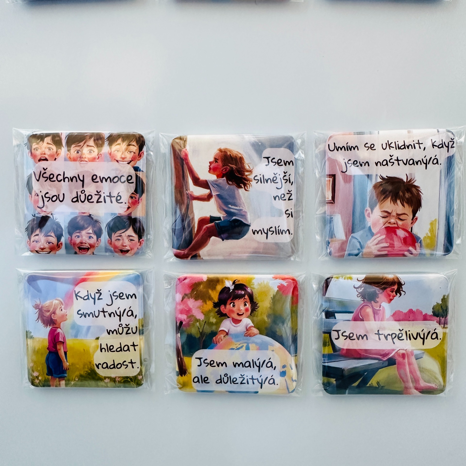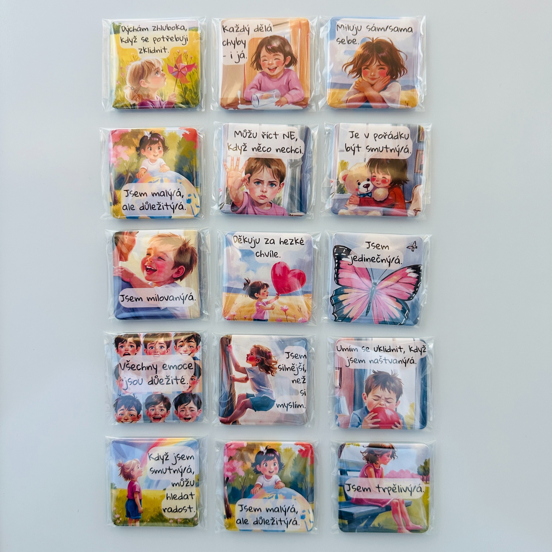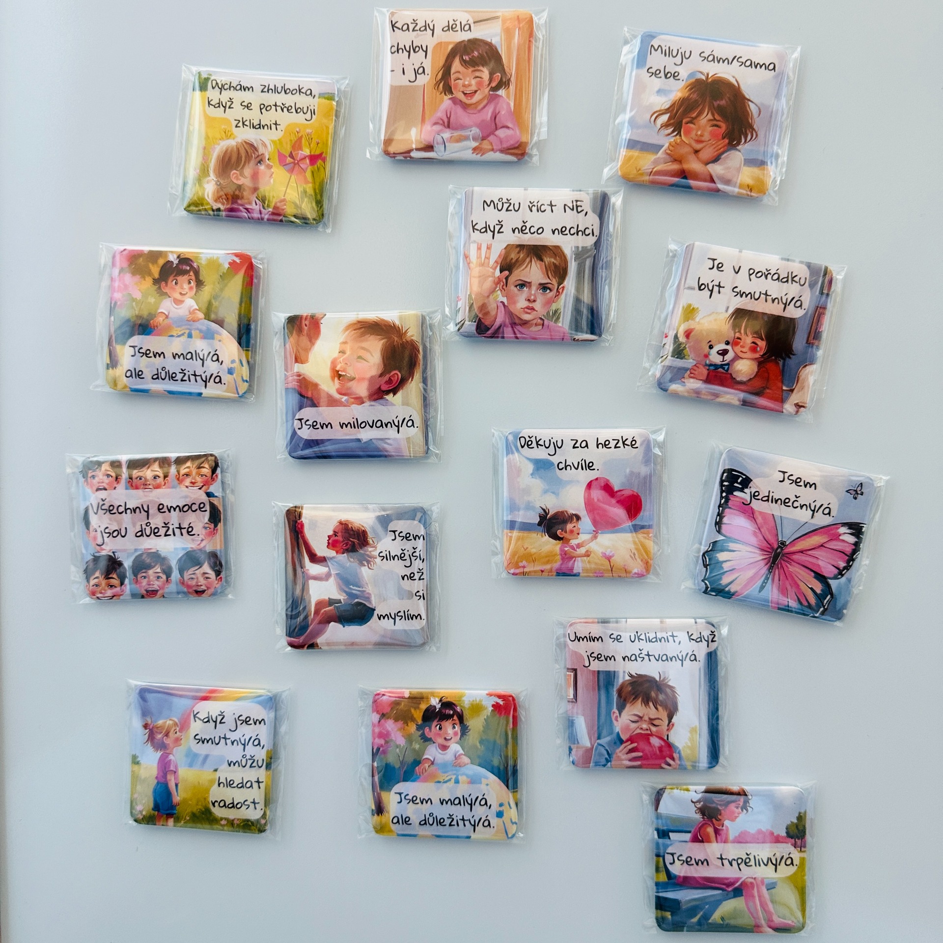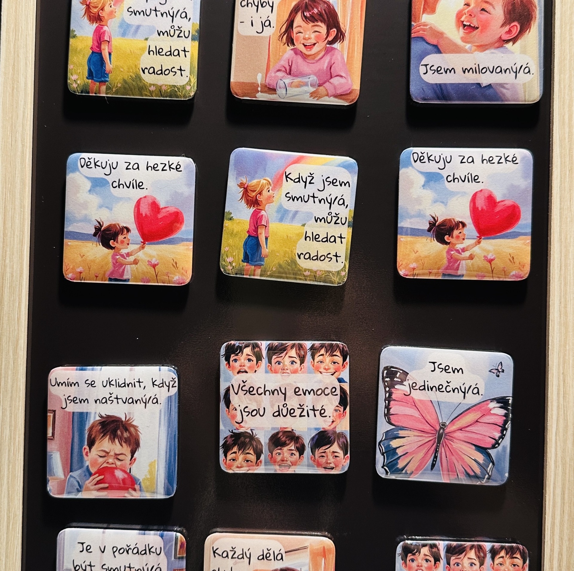 Tato magnetka přenáší myšlenky z vašich oblíbených produktů do běžného dne. Ať už jde o afirmace nebo emoce, dítě je má stále na očích – na lednici, magnetické tabuli nebo kdekoliv doma, kde se často zastavíte.