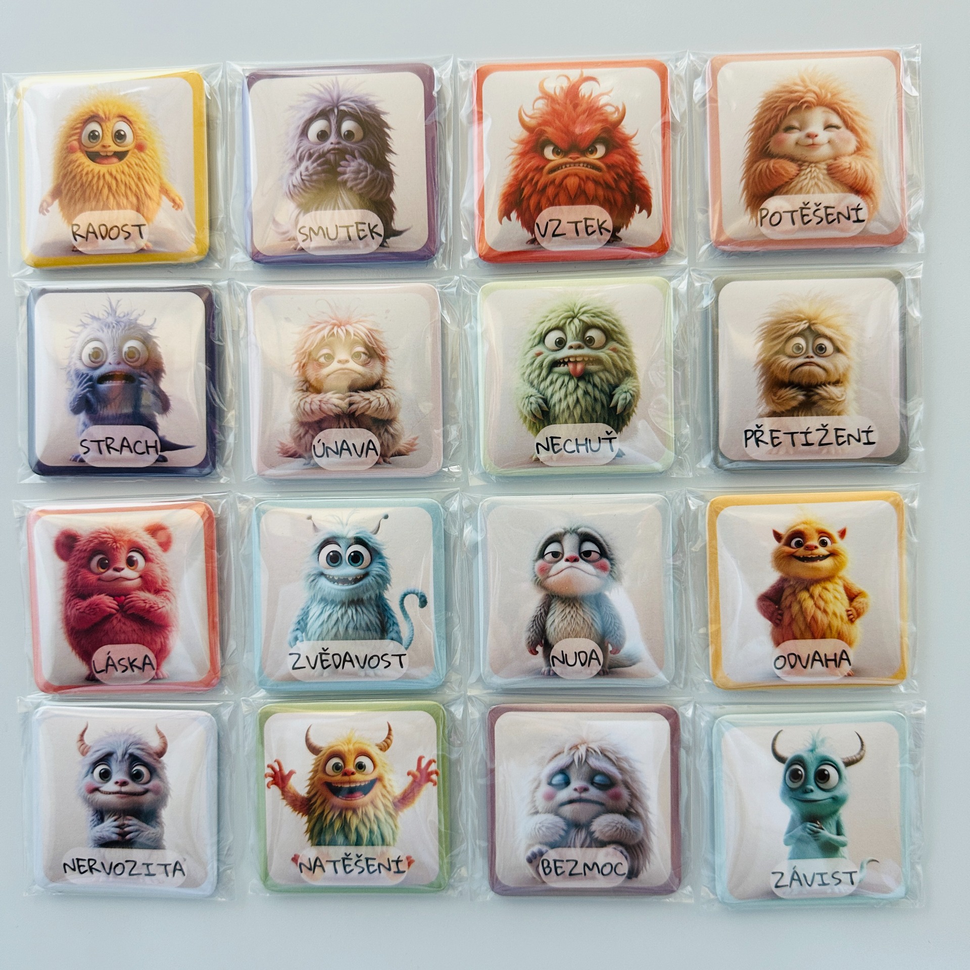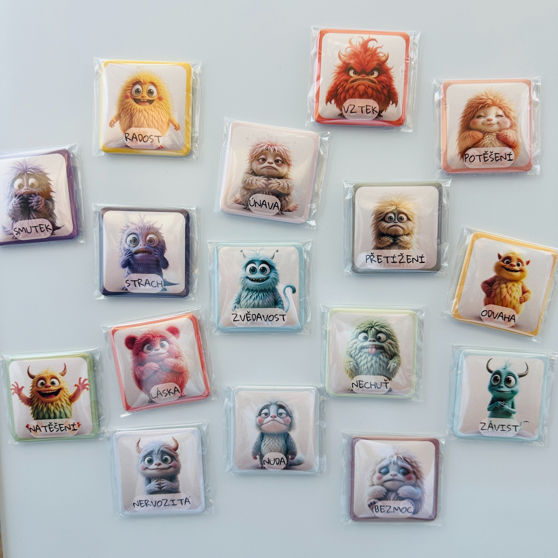 - magnetky s emocemi (z pexesa a kvarteta)